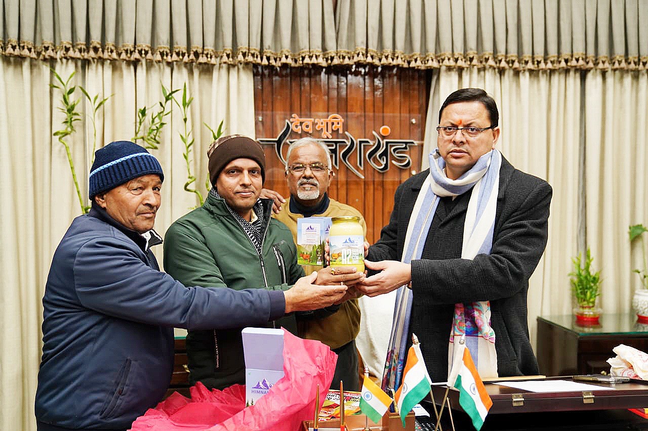 देहरादून। सामाजिक सरोकार को लेकर बना हिमनन्दिनी संस्था ने विलुप्त होती बद्री गाय के उत्थान के लिये सकारात्मक पहल के तहत अपना पहला उत्पादन बद्री गाय का घी  बाजार में उतार दिया। पहाड़ की कामधेनु बद्री गाय का हिमनन्दिनी ब्रांड निर्मित घी का उत्तराखण्ड़ के यशस्वी युवा लोकप्रिय मुख्यमंत्री पुष्कर सिंह धामी एवं जागेश्वर के लोकप्रिय नेता एवं  विधायक मोहन सिंह मेहरा के कर कमलों से शुद्ध पहाड़ी बद्री गाय का घी हिमनन्दिनी का मुख्यमंत्री आवास में विधिवत् शुभारंभ किया गया।