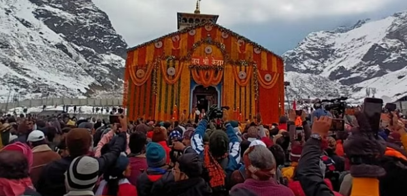 केदारनाथ धाम के कपाट खुले, श्रद्धालुओं पर हेलीकॉप्टर से पुष्पवर्षा की गई