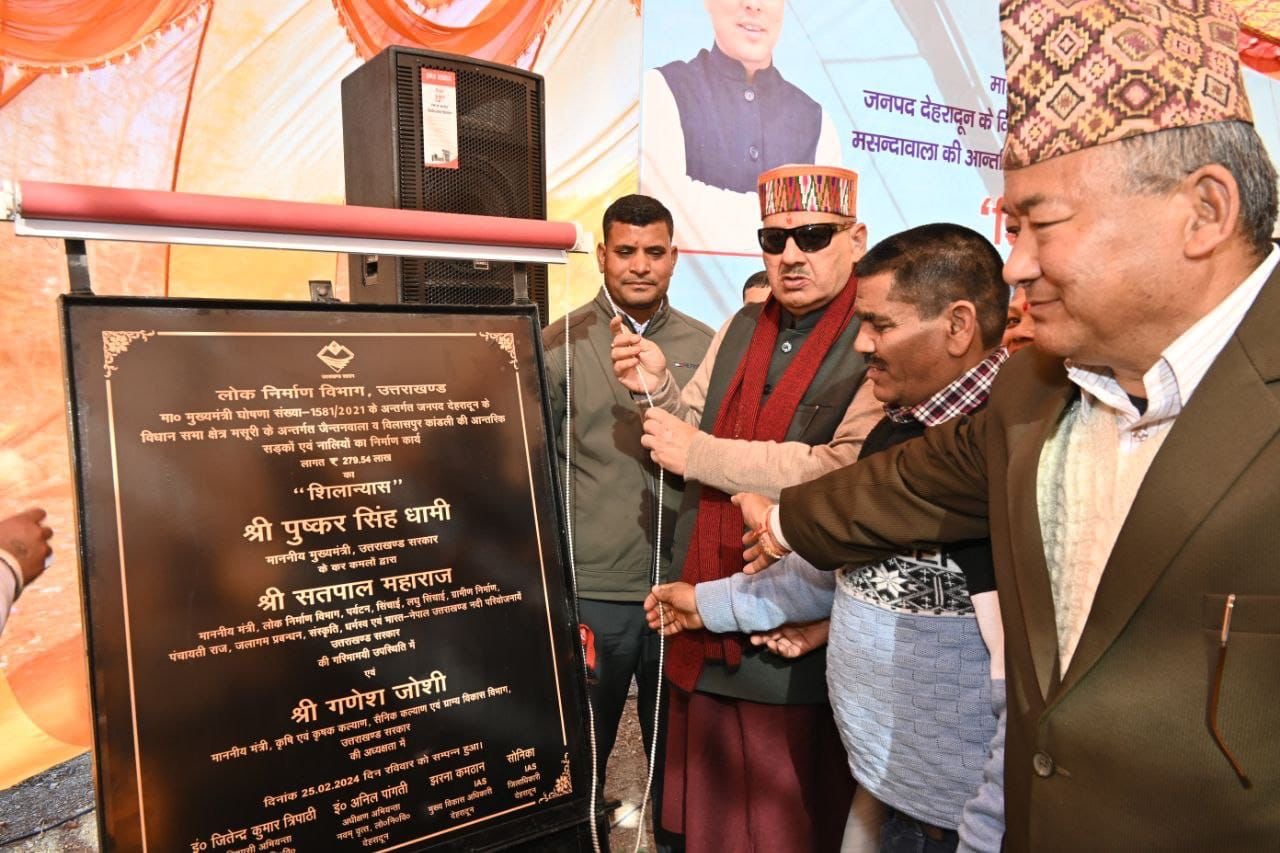 मंत्री गणेश जोशी ने रविवार को देहरादून में मसूरी विधानसभा क्षेत्र के अर्न्तगत जैंतनवाला में जिला योजना के अंतर्गत 11 लाख रुपए की विभिन्न विकास योजनाओं का लोकार्पण तथा मुख्यमंत्री घोषणा के तहत रुपये 279.84 लाख की लागत से बनने वाली जैन्तनवाला, विलासपुर काण्डली व मसन्दावाला की आन्तरिक सड़को का शिलान्यास किया। कैबिनेट मंत्री गणेश जोशी ने अधिकारियों को 06 माह के भीतर विकास कार्यों को पूर्ण करने के निर्देश दिए गए। उन्होंने अधिकारियों को निर्माण कार्यों में गुणवत्ता का विशेष ध्यान रखने के निर्देश भी दिए।