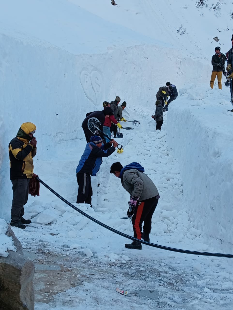 -त्वरित गति से चल रहा केदारनाथ पैदल मार्ग से बर्फ हटाने का कार्य।
