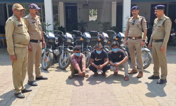 दुपहिया वाहन चोरी मामलों को खुलासा करते हुए पुलिस ने तीन शातिर चोरों को गिरफ्तार कर लिया है। जिनकी निशानदेही पर चुराये गये 6 दुपहिया वाहन भी बरामद किये गये है।