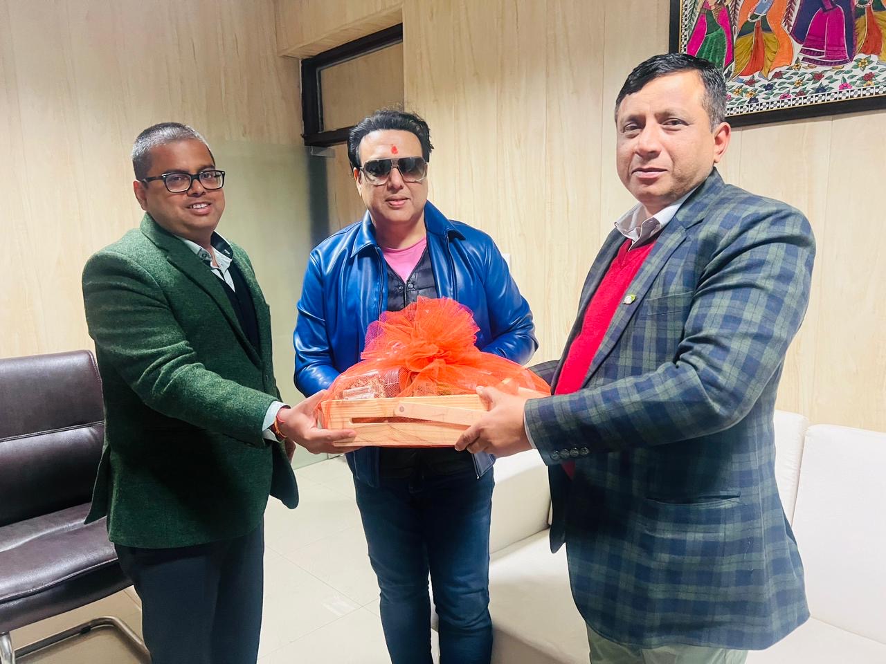 देहरादून। प्रसिद्ध फिल्म अभिनेता गोविंदा ने बुधवार को उत्तराखंड विकास परिषद के सीईओ और महानिदेशक सूचना बंशीधर तिवारी से भेंट की। फिल्म विकास परिषद के नोडल अधिकारी संयुक्त निदेशक डॉ नितिन उपाध्याय भी उपस्थित थे।