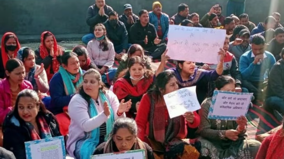 देहरादून। उत्तराखंड विधानसभा में बैकडोर भर्तियों के चलते बर्खास्त हुए कर्मचारी विधानसभा के बाहर पांच दिवसीय धरने पर बैठ गए। इस दौरान कर्मचारियों ने प्रदर्शन करते हुए सरकार के खिलाफ नारेबाजी की। वहीं, उन्होंने दोबारा नियुक्ति की मांग की। कर्मचारियों का कहना है कि एक ही नियमों के तहत राज्य गठन के बाद विधानसभा सचिवालय में तदर्थ आधार पर कर्मचारियों की नियुक्ति हुई है, लेकिन 2016 के बाद लगाए गए 228 कर्मचारियों को ही बर्खास्त किया गया। कर्मचारियों की मांग है कि या तो उन्हें बहाल किया जाए या राज्य गठन के बाद से 2016 तक लगे कर्मचारियों को भी बर्खास्त किया जाए।