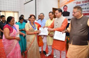 देहरादून। मुख्यमंत्री पुष्कर सिंह धामी ने मुख्यमंत्री आवास स्थित, मुख्य सेवक सदन में सेवा पखवाड़ा 2022 के तहत ‘स्वच्छता गौरव सम्मान’ कार्यक्रम में स्वच्छता दूतों को सम्मानित किया। इस अवसर पर मुख्यमंत्री ने पी.एम. स्वनिधि के लाभार्थियों एवं स्वच्छता पर आयोजित निबंध एवं चित्रकला प्रतियोगिता के विजेता बच्चों को भी सम्मानित किया।