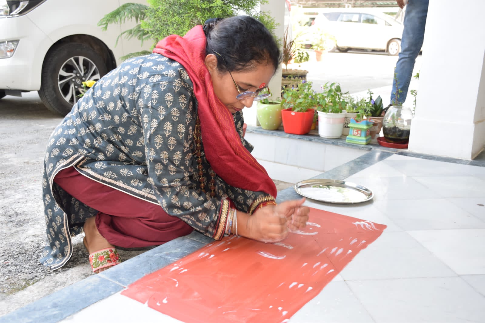 देहरादून। धनतेरस पर्व पर उत्तराखंड विधानसभा अध्यक्ष ऋतु खंडूड़ी भूषण ने देहरादून स्थित अपने शासकीय आवास पर ऐपण कला के जरिए मां लक्ष्मी के चरण एवं कई सुंदर कलाकृतियां बनाकर दीपावली की प्रदेशवासियों को शुभकामनाएं दी। साथ ही विधानसभा अध्यक्ष ने आह्वान किया कि इस दीपावली उत्तराखंड की गौरवशाली परंपरा एवं संस्कृति के संरक्षण के लिए घर के आंगन और दहलीज को सुंदर व आकर्षण बनाने के लिए ऐपण कला का प्रयोग जरूर करें।