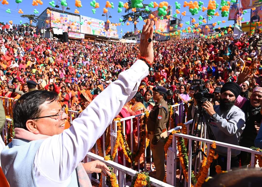चम्पावत/देहरादून। मुख्यमंत्री पुष्कर सिंह धामी रविवार को मातृ-शक्ति को समर्पित “संगज्यू-2024“ कार्यक्रम में जनपद चंपावत के लोहाघाट पहुंचे। इस अवसर पर मुख्यमंत्री ने राजकीय इंटर कॉलेज लोहाघाट से रामलीला मैदान लोहाघाट तक विशाल रोड शो में प्रतिभाग किया। रोड शो में हजारों की संख्या में जनपद के विभिन्न क्षेत्रों से जनता पहुंची जनता ने पुष्प वर्षा कर प्रदेश के मुख्यमंत्री का भव्य स्वागत किया। मुख्यमंत्री श्री धामी ने रोड शो के दौरान लोगों का अभिवादन स्वीकार किया।