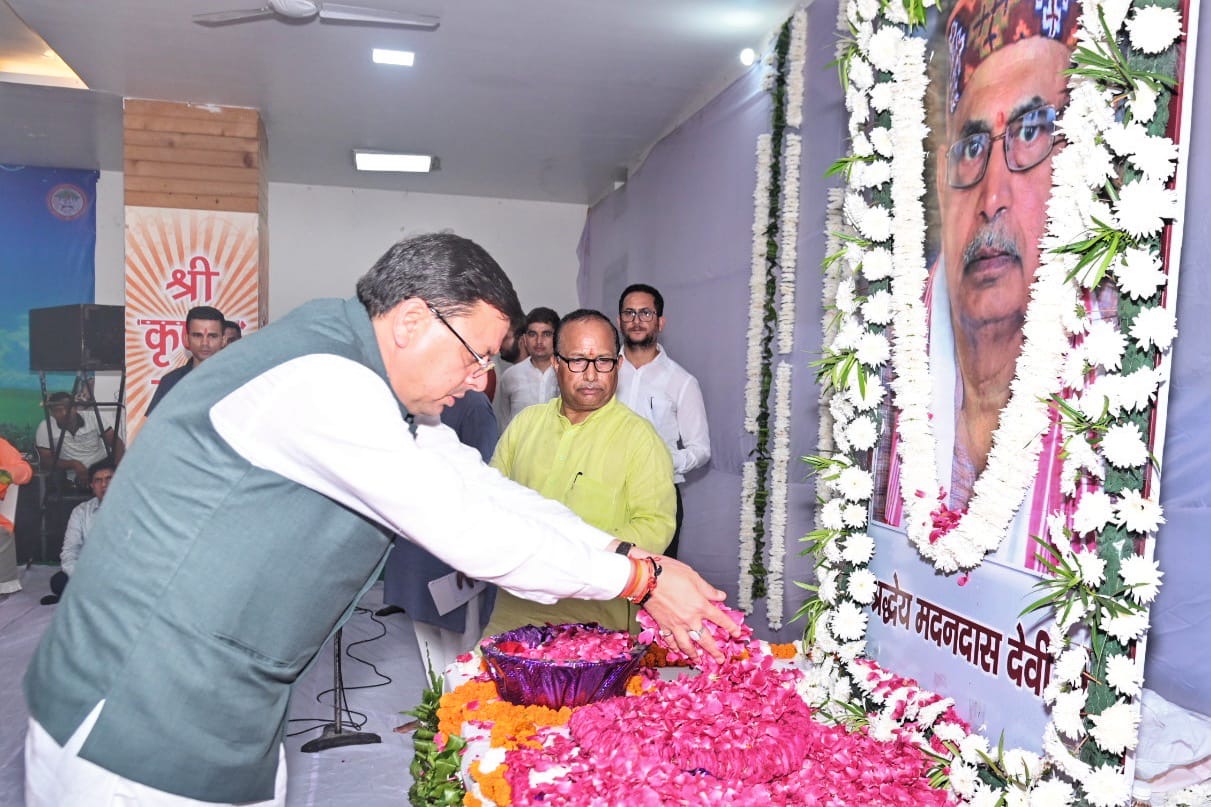 हरिद्वार/देहरादून। मुख्यमंत्री पुष्कर सिंह धामी ने बुधवार को भीमगोडा स्थित कृष्ण कृपा आश्रम में आयोजित श्रद्धाजंलि सभा मे राष्ट्रीय स्वयंसेवक संघ के पूर्व सह कार्यवाह मदन दास देवी को श्रद्धांजलि अर्पित की। मुख्यमंत्री पुष्कर सिंह धामी ने कहा कि मदन दास देवी जी के निधन से समाज की अपूरणीय क्षति हुई है।