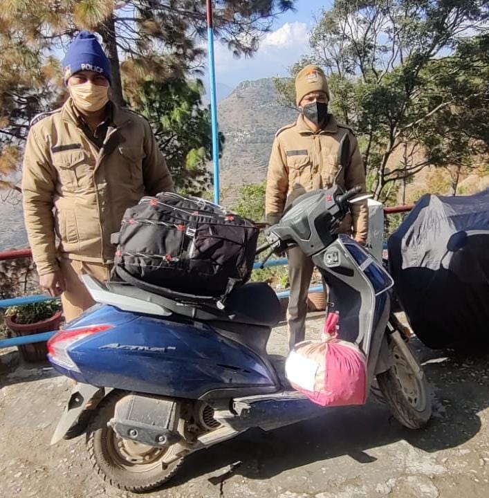 आचार संहिता के दौरान एफएसटी टीम सल्ट स्याल्दे व एसओजी टीम द्वारा चलाए जा रहे चैकिंग अभियान में स्कूटी से बरामद किया 16.700 किलो गाँजा