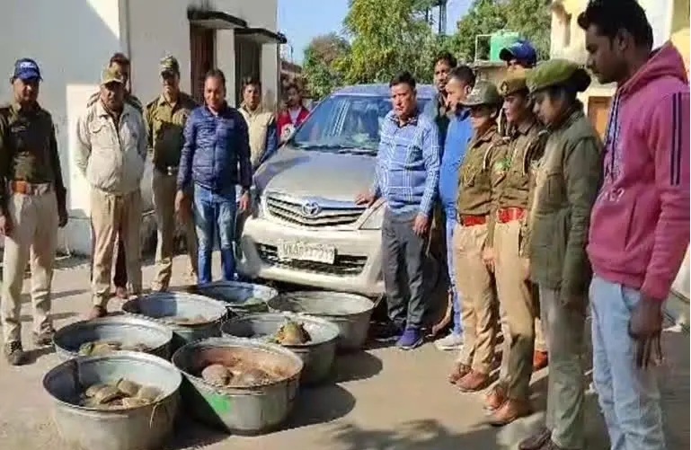 चेकिंग के दौरान कार से बरामद हुए 173 जिंदा कछुए