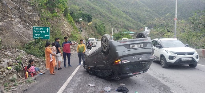 टिहरी। 25 मई 2025: ऋषिकेश-बदरीनाथ हाईवे पर रविवार को पंतगांव के पास नोएडा के यात्रियों की एक कार अनियंत्रित होकर सड़क पर पलट गई। कार के पलटते ही चीख पुकार मच गई। गनीमत रही कि कार खाई की तरफ नहीं गिरी, वरना बड़ा हादसा हो सकता था। सभी परिवार के लोग सुरक्षित हैं। थानाध्यक्ष महिपाल सिंह रावत के अनुसार, नोएडा निवासी अनुभव प्रसाद डिमरी पुत्र वीरेंद्र प्रसाद अपनी पत्नी और बच्चों के साथ श्रीकोट गंगानली, श्रीनगर की ओर आ रहे थे।