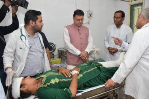 (फोटो: सड़क हादसे के घायलों का हाल पुछते मुख्यमंत्री पुष्कर सिंह धामी)