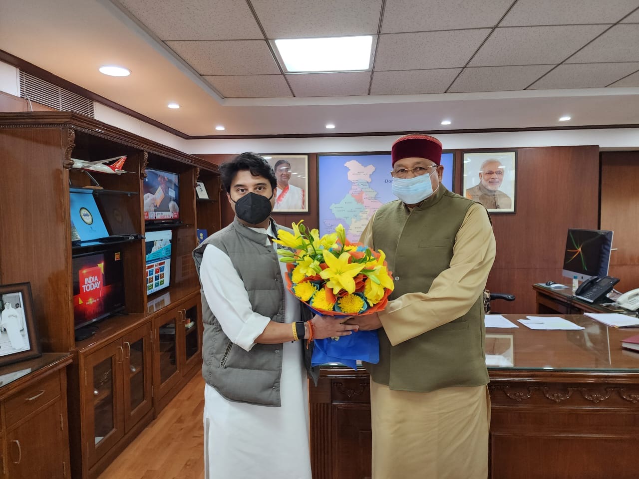 पर्यटन मंत्री श्री महाराज ने केन्द्रीय मंत्री ज्योतिरादित्य सिंधिया को अवगत कराया कि उत्तराखण्ड में अंतर्राष्ट्रीय एयरपोर्ट स्थापित किए जाने हेतु एक स्थान पर 1200 हेक्टेयर और दूसरे स्थान पर 1100 हेक्टेयर भूमि का चयन किया गया है। इस पर केंद्रीय मंत्री ने श्री महाराज को अंतरराष्ट्रीय एयरपोर्ट स्थापित करने के संबंध में पूरी प्रक्रिया की जानकारी देते हुए कहा कि आप प्रक्रिया के अनुसार आवेदन करें। इस कार्य में उनका पूरा सहयोग प्रदेश को मिलेगा। इस मौके पर रीवा रियासत के महाराज पुष्पराज सिंह ने भी उनसे भेंट कर विभिन्न प्रदेशों जैसे उत्तराखंड और मध्य प्रदेश स्थित बिंद के स्थानीय व्यंजनों को स्थानीय फ्लाइटों में यात्रियों को परोसने जाने का अनुरोध किया। केंद्रीय नागरिक उड्डयन मंत्री ज्योतिरादित्य सिंधिया ने प्रदेश के पर्यटन मंत्री सतपाल महाराज से चर्चा के दौरान फ्लाइटों में यात्रियों को स्थानीय व्यंजन परोसे जाने के प्रस्ताव पर सहमति जताते हुए कहा कि वह उत्तराखंड के स्थानीय व्यंजनों की एक सूची उन्हें उपलब्ध करवाएं, ताकि इस पर आगे कार्यवाही की जा सके। इस अवसर पर पर्यटन मंत्री सतपाल महाराज के साथ आईएचएम के प्रधानाचार्य जगदीप खन्ना भी मौजूद रहे।