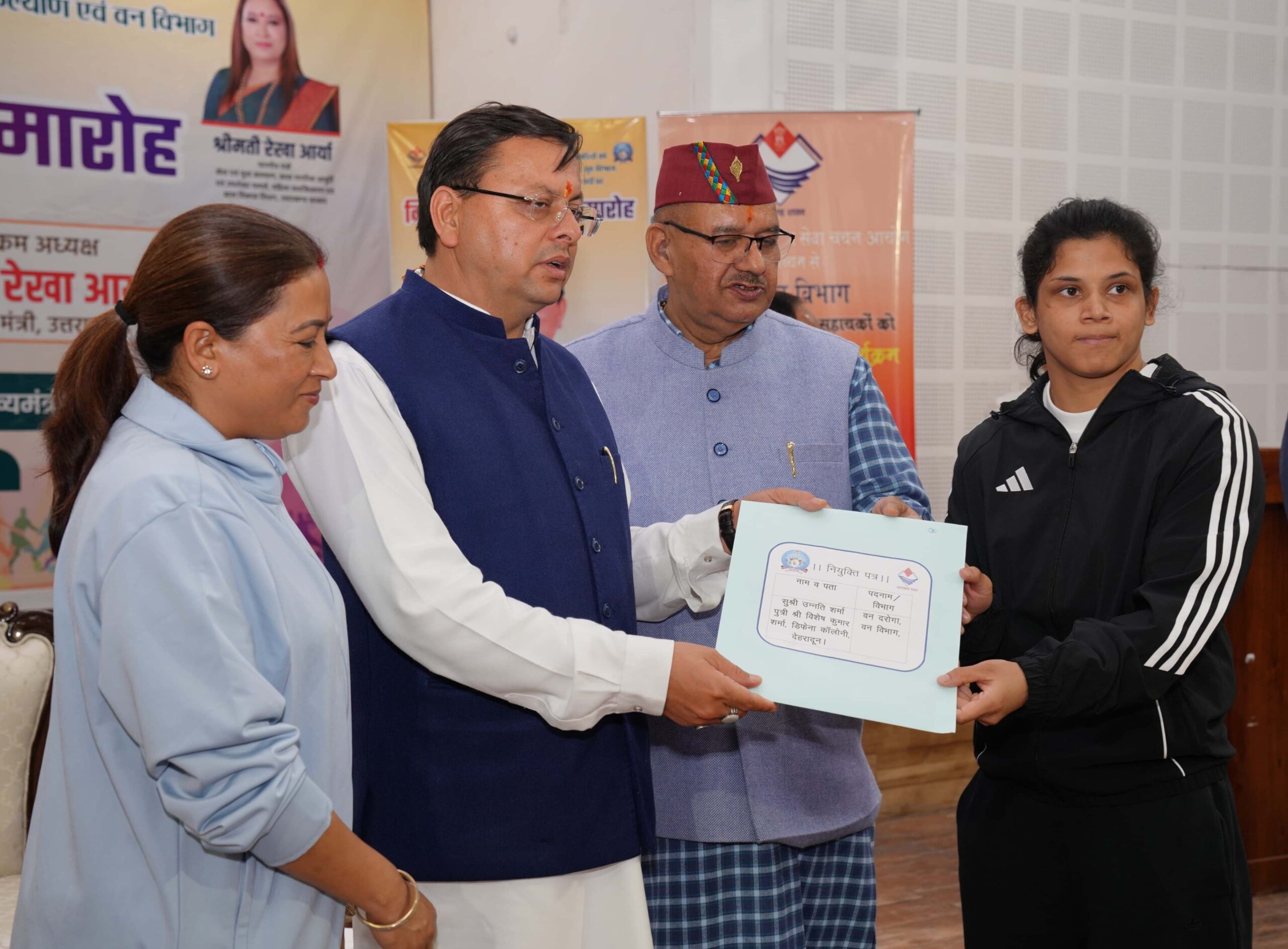 उन्होंने कहा कि विकल्प रहित संकल्प के मंत्र के साथ हम उत्तराखंड को देश का श्रेष्ठ राज्य बनाने के लिए निरन्तर कार्य कर रहे हैं तथा आप लोगों को नियुक्ति पत्र देना भी हमारे संकल्प का हिस्सा है। कार्यक्रम को कैबिनेट मंत्री गणेश जोशी तथा रेखा आर्य ने भी सम्बोधित करते हुये, सरकार की उपलब्धियों पर विस्तृत प्रकाश डाला तथा चयनित अभ्यर्थियों को बधाई व शुभकामनायें दी।