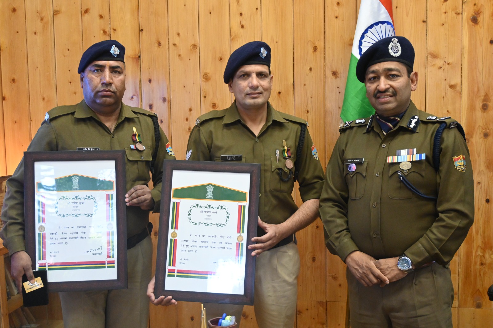 देहरादून। उत्तराखंड पुलिस के दो सिपाहियों फैजान अली और राजेश कुंवर को प्रधानमंत्री रक्षा पुलिस पदक से नवाजा गया है। दोनों सिपाहियों ने वर्ष 2019 में रायपुर स्थित एक घर में पार्क कार में आग लगने से फंसे परिवार के छह लोगों को बचाया था। उन्हें यह पदक मध्य प्रदेश में राज्यपाल मंगूभाई पटेल के हाथों दिया गया।