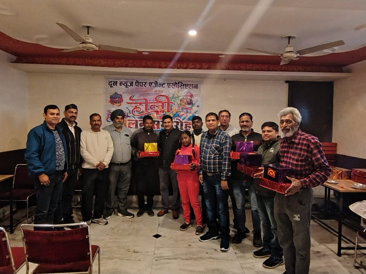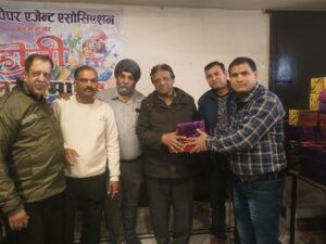 दून न्यूज पेपर एजेंट एसोसिएशन पल्टन बाजार के सभी समाचार पत्र विक्रेता सिटी बैंकेट हाल में एकत्रित हुए सभी ने वहां आपस में एक दूसरे को होली की बधाई दी।