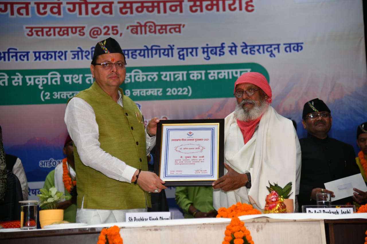 -मुख्यमंत्री ने पद्मभूषण डॉ. अनिल जोशी को किया उत्तराखण्ड गौरव से सम्मानित।