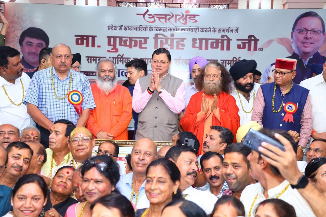 देहरादून 13 जुलाई 2025: मुख्यमंत्री पुष्कर सिंह धामी ने रविवार को बल्लीवाला, देहरादून में ‘भ्रष्टाचार मुक्त उत्तराखंड’ के लिए मुख्यमंत्री द्वारा किए जा रहे प्रयासों पर धार्मिक एवं सामाजिक संस्थाओं द्वारा आयोजित सम्मान समारोह में प्रतिभाग किया। इस अवसर पर मुख्यमंत्री ने सभी को भ्रष्टाचार मुक्त उत्तराखंड की शपथ भी दिलाई। मुख्यमंत्री ने प्रदेश को भ्रष्टाचार से मुक्त बनाने की दिशा में उठाए गए कदमों के बारे में जानकारी दी और जनता के समर्थन को इस अभियान की सबसे बड़ी ताकत बताया। उन्होंने कहा कि यह अभिनंदन समारोह केवल एक सम्मान नहीं, बल्कि उत्तराखंड को भ्रष्टाचार मुक्त बनाने के सपने को साकार करने का उत्सव है। यह सम्मान उत्तराखंड की सवा करोड़ जनता का है, जो ईमानदारी, पारदर्शिता और जवाबदेही के मूल्यों के साथ राज्य के विकास की दिशा में अग्रसर है।
