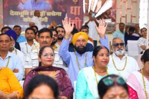 मुख्यमंत्री ने कहा कि राज्य में छद्म वेशधारियों की मूल पहचान उजागर करने के लिए “ऑपरेशन कालनेमि” चलाया जा रहा है। अब तक 200 से अधिक संदिग्धों को पकड़ा गया है, जिनमें कुछ बांग्लादेशी घुसपैठिए भी शामिल हैं। मुख्यमंत्री ने जनता से अपील की कि ऐसे तत्वों की जानकारी तुरंत पुलिस को दें। मुख्यमंत्री ने कहा कि प्रधानमंत्री नरेंद्र मोदी के “ना खाऊँगा, ना खाने दूँगा” के मंत्र को अपनाते हुए राज्य सरकार पारदर्शी, जवाबदेह और जनहितकारी शासन व्यवस्था के निर्माण के लिए संकल्पबद्ध है। उन्होंने कहा कि प्रदेश को भ्रष्टाचार मुक्त, सांस्कृतिक रूप से समृद्ध और देश का सर्वश्रेष्ठ राज्य बनाने की दिशा में निरंतर कार्य किया जा रहा है। इस अवसर पर विधायक खजान दास, स्वामी चिदानंद सरस्वती, किशन गिरी महाराज, राकेश ओबेरॉय, पंकज गुप्ता एवं विभिन्न धार्मिक एवं सामाजिक संगठनों के प्रतिनिधि मौजूद थे।