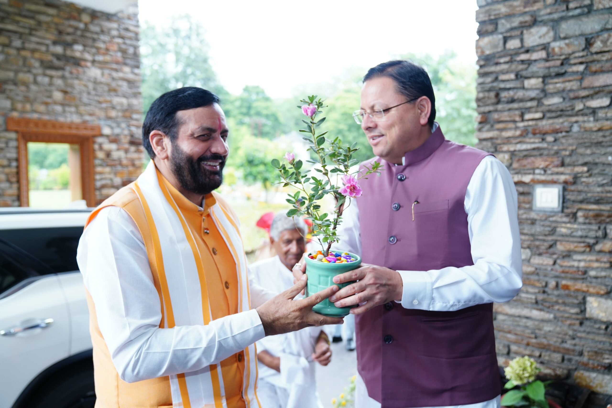 देहरादून 20 जुलाई 2025: मुख्यमंत्री पुष्कर सिंह धामी ने रविवार को मुख्यमंत्री आवास में हरियाणा के मुख्यमंत्री नायब सिंह सैनी का स्वागत एवं अभिनंदन किया। इस अवसर पर मुख्यमंत्री पुष्कर सिंह धामी ने उन्हें चारधाम का प्रसाद एवं देवभूमि उत्तराखंड के अंब्रेला ब्रांड “हाउस ऑफ हिमालया“ के स्थानीय उत्पाद भी भेंट किए। मुख्यमंत्री पुष्कर सिंह धामी तथा हरियाणा के मुख्यमंत्री के मध्य दोनों राज्यों के हितों से संबंधित विभिन्न समसामयिक विषयों पर चर्चा हुई।