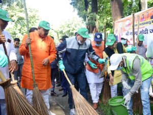 देहरादून। मुख्यमंत्री पुष्कर सिंह धामी ने रविवार को पंतनगर, उधम सिंह नगर स्थित जी.बी पंत यूनिवर्सिटी परिसर में सेवा पखवाड़े के अंतर्गत स्वच्छता कार्यक्रम में प्रतिभाग किया, इस दौरान उन्होंने स्वयं सड़क पर झाड़ू लगाकर स्वच्छता का संदेश दिया। मुख्यमंत्री ने कहा कि प्रधानमंत्री नरेन्द्र मोदी के नेतृत्व में भारत शक्तिशाली, समृद्ध एवं समरस भारत के रूप में आगे बढ़ रहा है। आज विश्व स्तर पर भारत का मान, सम्मान एवं स्वाभिमान बढ़ा है।