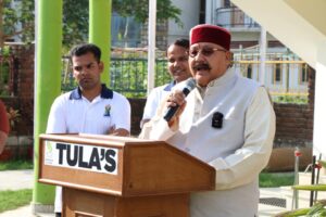 अंतरराष्ट्रीय योग दिवस के अवसर पर तुलास् इंस्टीट्यूट के साथ-साथ अन्य इंस्टिट्यूट से आए छात्र छात्राओं से कैबिनेट मंत्री सतपाल महाराज ने कहा कि कोविड जैसी महामारी के दौरान योग एक मजबूत ढाल के रूप में दिखाई दिया है। नियमित रूप से और सही तरह से आसान योग करने पर स्वस्थ तन और सुंदर मन मिलता है। फिट और स्वस्थ रहने के लिए आजकल हेल्थ क्लब्स, स्कूल्स और हॉस्पिटल्स में भी योग करवाया जाने लगा है। उन्होंने बताया कि इस बार योग का यह आयोजन ष्मानवता के लिए योग की थीम पर आधारित है। इसलिए हम सभी को मिलकर ऐसे आयोजनों को सफल बनाने के साथ-साथ योग की लोकप्रियता को आगे बढ़ाने का काम करना है। इस अवसर पर तुलाज इंस्टीट्यूट के सुनील कुमार जैन, रौनक जैन, राघव गर्ग, संदीप विजया, डीन शिक्षाविद निशान्त सक्सेना, डीन कृषि और प्रबंधन डॉ. रनित किशोर, पवन कुमार आदि मौजूद थे।