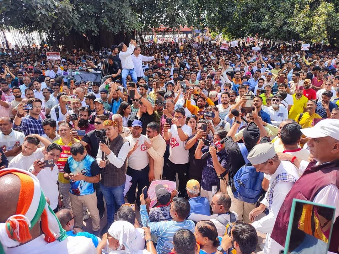 मूल निवास, भू-कानून समन्वय संघर्ष समिति के आह्वान पर प्रदेशभर से हजारों की संख्या में पहुंचे लोग।