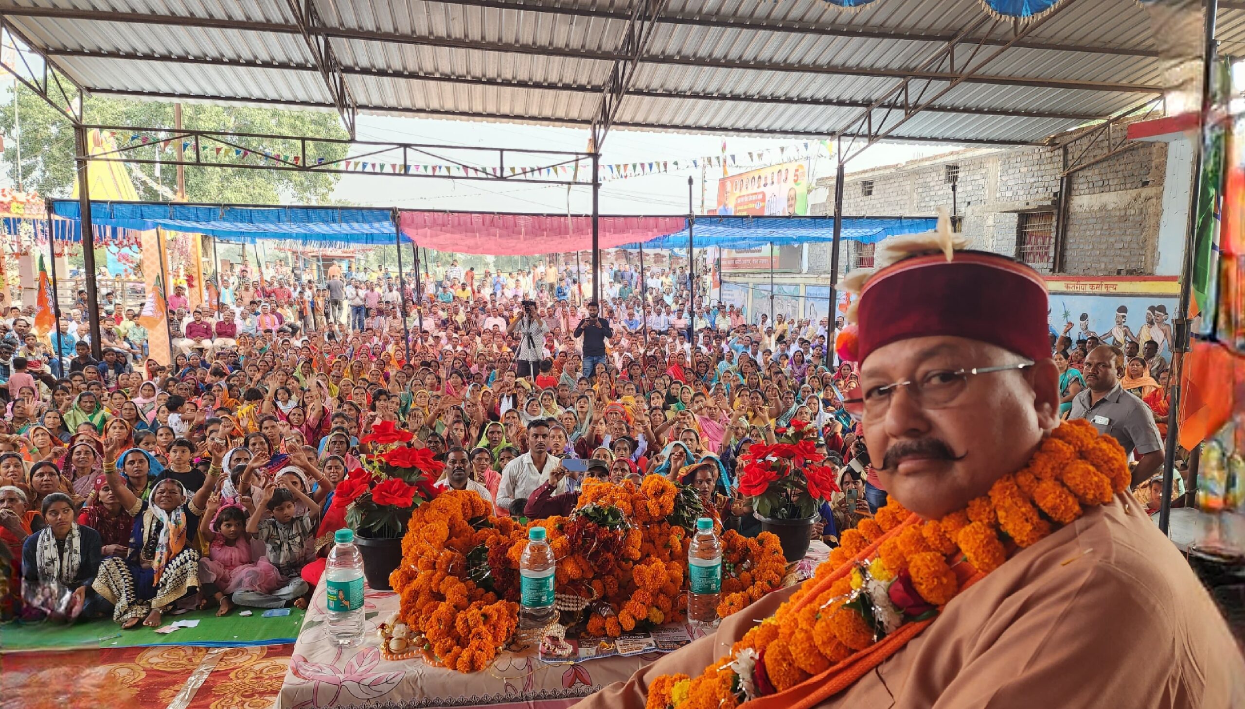 श्री महाराज ने चुनावी सभा में जनता से भाजपा प्रत्याशियों को विजय बनाने का अनुरोध करते हुए आह्वान किया कि वह राज्य से भ्रष्टाचारी कांग्रेस सरकार को उखाड़ कर भाजपा की डबल इंजन की सरकार को सत्ता में लायें ताकि यह प्रदेश विकास की बुलंदियों को छूते हुए नये कीर्तिमान स्थापित करें। इस मौके भाजपा के अनेक पदाधिकारी और कार्यकर्ता भी मौजूद रहे।
