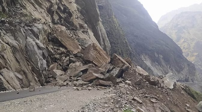पहाड़ी से गिरी चट्टान के नीचे दबा वाहन, नौ लोगों के मारे जाने की आशंका