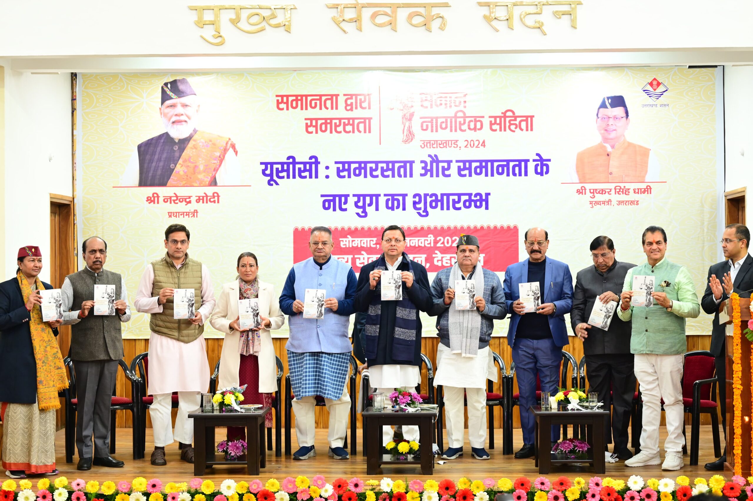 देहरादून। मुख्यमंत्री पुष्कर सिंह धामी ने उत्तराखंड में समान नागरिक संहिता लागू होने की अधिकारिक घोषणा करते हुए कहा है कि आज का दिन सिर्फ उत्तराखंड के लिए ही नहीं बल्कि पूरे भारत वर्ष के लिए ऐतिहासिक है। आज से उत्तराखंड में समाज में समानता स्थापित करने के लिए, समान नागरिक संहिता लागू हो गई है। सोमवार को सीएम आवास स्थित मुख्य सेवक सदन में आयोजित समारोह में मुख्यमंत्री पुष्कर सिंह धामी ने विधिवत तौर पर समान नागरिक संहिता की अधिसूचना का अनावरण, यूसीसी पोर्टल का भी शुभारंभ और यूसीसी नियमावली बुकलेट का विमोचन किया।