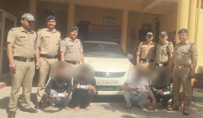 देर शाम थाना बलुआकोट पुलिस द्वारा क्षेत्र में तलाशी अभियान चलाया जा रहा था। इस दौरान पुलिस को मल्ली कुचिया धारचुला रोड पर एक सफेद रंग की स्विफ्ट कार संदिग्ध रूप से सड़क पर खड़ी दिखी। गाड़ी की तलाशी ली गई और गाड़ी से समीर उल रहमान पुत्र अतीक उल रहमान निवासी चांद मौहल्ला दरियागंज दिल्ली के कब्जे से 500 के कुल 14 नोट, कुल 7000 रुपये, आसिफ पुत्र सकील निवासी चितलागेट चावड़ी बाजार दिल्ली के कब्जे से 500 के कुल 15 नोट, कुल 7500 रुपये, शोएब पुत्र शहनवाज हुसैन निवासी चितलागेट चावड़ी बाजार दिल्ली के कब्जे से 500 के कुल 14 नोट, कुल 7000 रुपये और नितिन पुत्र करन सिंह निवासी मुनस्यारी के कब्जे से 500 के कुल 15 नोट, कुल 7500 रुपये, कुल 29 हजार रुपये बरामद किए गए। पूछताछ के दौरान आरोपियों ने बताया कि वे लोग भारत-नेपाल सीमा से लगे बाजारों में नकली नोट चलाने के लिए आए थे। पुलिस ने मौके से आरोपियों की स्विफ्ट को भी सीज कर लिया गया है।
