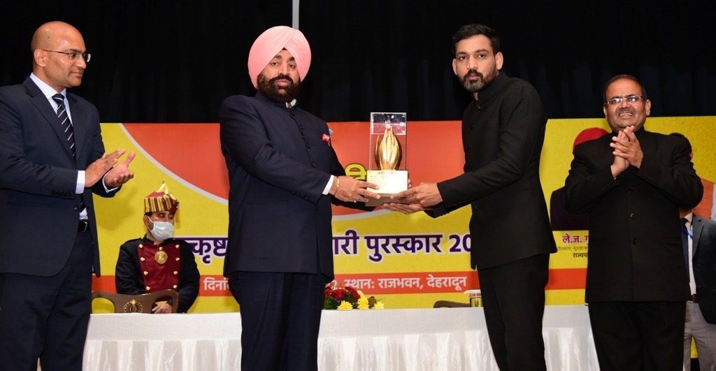 डॉ आशीष चौहान, वर्तमान जिलाधिकारी पौड़ी, आप पूर्व में जब पिथौरागढ़ जनपद में तैनात थे, तब जब आपके प्ददवअंजपअम ।चचतवंबी की चर्चा पूरे प्रदेश में की जाति रही, आपके द्वारा बेडू के उत्पादों के लिए महिला स्वयं सहायता समूह के साथ किए गए प्रयासों की स्वयं प्रधानमंत्री जी ने अपने मन की बात कार्यक्रम में सराहना की थी। जिसके पश्चात यहाँ राजभवन में हमने भी आपकी पूरी टीम का सम्मान किया था। मयूर दीक्षित, आपके द्वारा पूर्व में जिलाधिकारी उत्तरकाशी के पद पर रहते हुए पर्यटन को बढ़ावा देने, सुदूर इलाकों में स्वास्थ्य सेवाओं के विस्तार के लिए एवं वर्तमान में भव्य केदारपुरी के पुनर्निर्माण को सही गति से संचालित करने के लिए सराहा जा रहा है। अभी सम्पन्न हुई सफल केदारनाथ यात्रा के प्रबंधन में भी आपका अतुलनीय योगदान रहा है। हिमांशु खुराना, चमोली जिलाधिकारी के रूप में आपके द्वारा जिस प्रकार सभी यात्रियों की सुख सुविधाओं को ध्यान में रखते हुए श्री बद्रीनाथ धाम एवं श्री हेमकुंड साहिब जी की यात्रा का सफल प्रबंधन किया गया उसके लिए आप बधाई के पात्र हैं, श्री बद्रीनाथ धाम मास्टर प्लान के निर्माण कार्यों को समय पर व सुचारु रूप से सम्पन्न करवाने में भी आप महत्वपूर्ण भूमिका निभा रहे हैं।