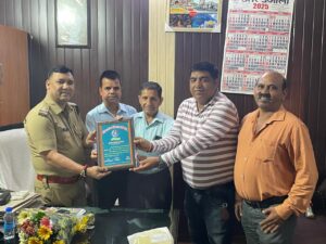 शिवलोक विकास समिति द्वारा रायपुर थाना प्रभारी गिरीश नेगी को किया सम्मानित।
