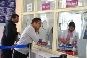 चिकित्सालय में चंदन लैब कांउटर पर कार्मिकों की स्थिति जानी तथा प्रमुख चिकित्सा अधीक्षक को फर्म के कार्मिकों की संख्या बढाने को फर्म को निर्देशित करने को कहा। चन्दन पैथोलॉजी लेब के कार्मिकों का शिफ्टवार रजिस्टर रखने के निर्देश दिए।