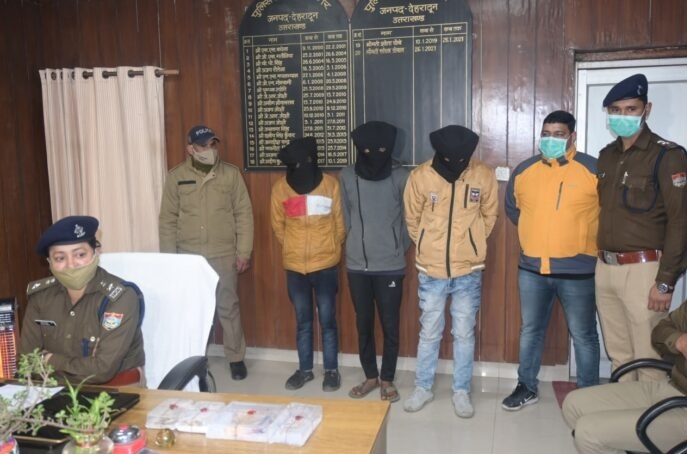 देहरादून। बंद घरों में चोरी करने वाले गैंग का खुलासा करते हुए पुलिस ने तीन शातिरों को पुलिस ने तीन शातिरों को गिरफ्तार कर लिया है। आरोपियों के कब्जे से पुलिस ने चोरी की गयी लाखों की ज्वैलरी व घटना में प्रयुक्त बाइक भी बरामद की गयी है। एस.पी.सिटी सरिता डोभाल द्वारा बताया गया कि बीती चार जनवरी को हरीशचन्द्र पुत्र रामनाथ निवासी गढवाली कॉलोनी नेहरुग्राम द्वारा थाना रायपुर में तहरीर देकर बताया गया कि एक जनवरी को उनका पुत्र नवनीत कुमार व पुत्रवधु शाम साढ़े चार बजे डोईवाला गुरुद्वारा गये हुये थे। जिसके बाद दोनों शाम को लौट कर आये तो उन्होने देखा कि उनके कमरे की आलमारी का लाकर खुला हुआ है और उसमे रखे जेवरात गायब है। उनके द्वारा अपने किरायेदार राहुल, कमल, अरविन्द एंव पडोस में रहने वाले शुभम का घटना को अंजाम देने का सन्देह जाहिर किया गया। जिसके आधार पर पुलिस ने मुकदमा दर्ज कर जांच शुरू कर दी गयी। घटना में जिन युवकों पर संदेह जताया गया था जब उनकी जांच की गयी तो पुलिस को मालूम हुआ कि वह लोग घटना में शामिल नहीं थे। जिन्हे वापस छोड़ दिया गया आगे की जांच शुरू कर दी गयी।