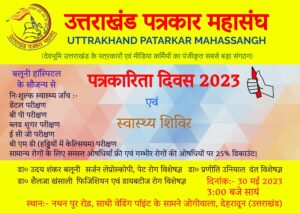 श्री सकलानी ने कहा चिकित्सा का क्षेत्र हो या पत्रकारिता का दोनो मे समान्यता बेहतर संवाद का होना आवश्यक है। समाज के हित के लिए दोनो की भूमिका महत्वपूर्ण है। पत्रकारिता दिवस पर पत्रकारों की जाँच कर रही चिकित्स्कों की टीम का आभार व्यक्त करते हुए कार्यक्रम का संचालन कर रहे प्रदेश सचिव सुभाष कुमार व घनश्याम जोशी ने मंच के माध्यम से अभिवादन कर उनका सम्मान किया।