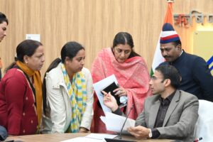 देहरादून। जिलाधिकारी सविन बंसल की अध्यक्षता में ऋषिपर्णा सभागार में जनता दर्शन/जनसुनवाई कार्यक्रम का आयोजन किया गया। जनसुनवाई में 96 शिकायत प्राप्त हुई। शिकायतों में भूमि संबंधी शिकायत, भूमि कब्जा, सरकारी भूमि पर अतिक्रमण, मुआवजा दिलाने, आपसी विवाद, नगर निगम, पर्यटन, महिला कल्याण, सड़क निर्माण हेतु वन भूमि चिन्हित करने आदि शिकायत प्राप्त हुई। आज वरिष्ठ नागरिकों सहित पर्यटन विभाग, नगर निगम, वन विभाग, पुलिस, नगर निगम बाल विकास आदि विभागों से सम्बन्धित शिकायतें प्राप्त हुई। जिलाधिकारी ने वरिष्ठ नागरिकों को बैठाकर से उनकी शिकायतें इत्मिनान से सुनते हुए अधिकारियों को वरिष्ठ नागरिकों की समस्याओं का निस्तारण हेतु विशेष प्रयास करें ताकि वरिष्ठ नागरिकों को भटकना न पड़े।