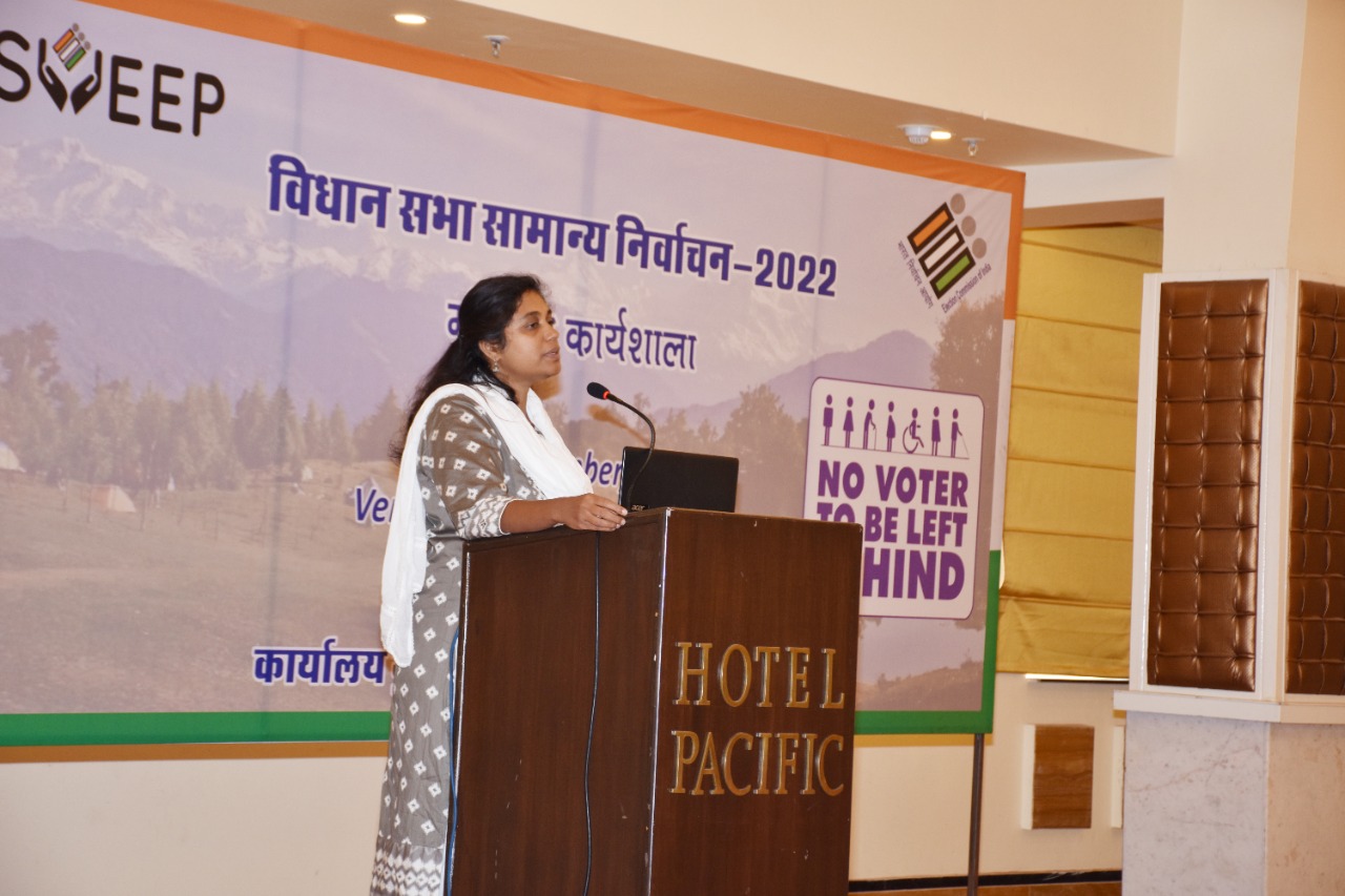 मुख्य निर्वाचन अधिकारी सौजन्या ने कहा कि मीडिया कार्यशाला का आयोजन आगामी निर्वाचन की दृष्टि से महत्वपूर्ण है। उन्होंने बताया कि मतदाता संक्षिप्त पुनरीक्षण-2022 सम्पन्न हो चुका है। शीघ्र ही निर्वाचन आयोग इलैक्टरोल का प्रकाशन करेगा। इस बार 3 लाख 99 हजार से अधिक नवीन पंजीकरण हमें प्राप्त हुए है। इस बार निर्वाचन आयोग द्वारा नई पहल की जा रही है, जिसके अन्तर्गत 80 वर्ष अधिक आयु के वरिष्ठ नागरिकों एवं निर्वाचक नामावली में चिन्हित दिव्यांगजनों को पोस्टल बैलट के माध्यम से मतदान की सुविधा प्रदान की जायेगी।