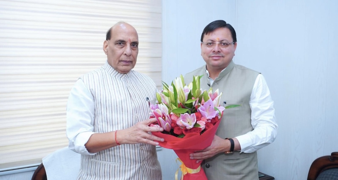 मुख्यमंत्री श्री पुष्कर सिंह धामी ने नई दिल्ली में केंद्रीय रक्षा मंत्री श्री राजनाथ सिंह से शिष्टाचार भेंट कर उन्हें राज्य की समस्त जनता की ओर से पुनः रक्षा मंत्रालय का दायित्व मिलने पर बधाई और शुभकामनायें दीं।