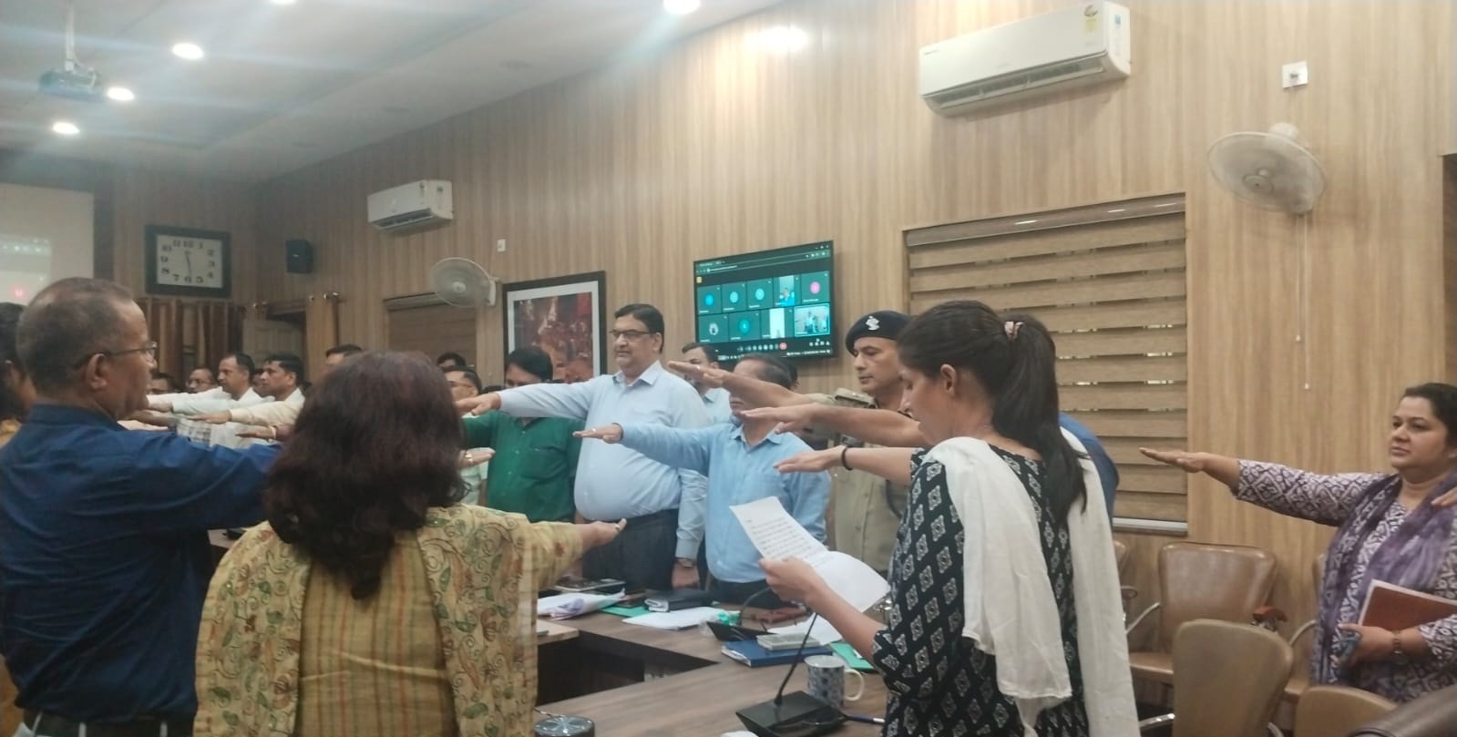 देहरादून। जिलाधिकारी सोनिका ने ऋषिपर्णा सभागार कलेक्टेªट में उपस्थित अधिकारियों के साथ नशामुक्ति की शपथ दिलाई। स्कूलों में नर्सरी से ही बच्चों को नशे के दुष्प्रभाव की जानकारी दी जाए ताकि उनके मन में नशे के दुष्प्रभाव के प्रति चेतना बनी रहे।