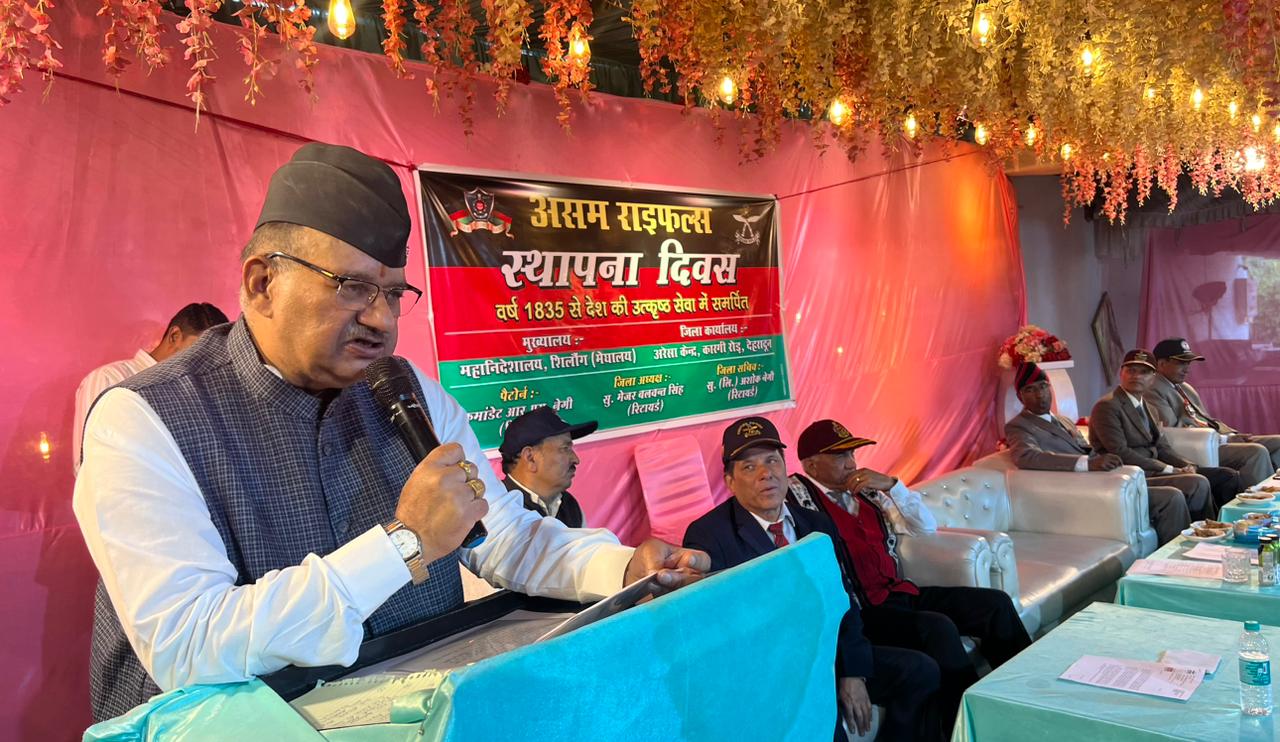 इस अवसर पर सैनिक कल्याण मंत्री जोशी ने सभी उपस्थित पूर्व सैनिकों और उनके परिवारों को 189वें स्थापना दिवस की बधाई भी दी। मंत्री ने शहीदों को स्मरण कर नमन करते हुए कहा कि असम राईफल्स देश की सबसे पुरानी अर्धसैनिक बल है। इस बल का गौरव पूर्ण इतिहास रहा है, इस बल ने प्रथम विश्वयुद्ध, द्वितीय विश्वयुद्ध की लड़ाई में शामिल होकर गौरव पूर्ण इतिहास लिखा है। यह बल नार्थ ईस्ट में सीमा सुरक्षा, आन्तरिक उग्रवाद को दबाने के साथ-साथ देश के विभिन्न हिस्सों में अपनी सेवायें दे रहा है। इस बल ने 1962 की लड़ाई 1971 की लड़ाई में भी आर्मी के साथ कन्धे से कन्धे मिलाकर काम किया हैं और देश के सबसे ज्यादा वीरता पदक से सम्मानित है।
