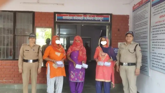 देहरादून। एसओजी व पुलिस की संयुक्त टीम ने नकली चांदी के बदले असली चांदी खरीदने वाली तीन ठग महिलाओं को गिरफ्तार कर उनके खिलाफ मुकदमा दर्ज कर लिया है। प्राप्त जानकारी के अनुसार गत दिवस कोतवाली ऋषिकेश पुलिस को सूचना प्राप्त हुई की झंडा चौक स्थित गढ़वाल ज्वेलर्स की दुकान में लोगों के द्वारा दो महिलाएं पकड़ी हुई है जो कि संदिग्ध है। प्राप्त सूचना पर त्वरित कार्रवाई करते हुए कोतवाली से पुलिस फोर्स झंडा चौक स्थित गढ़वाल ज्वेलर्स की दुकान में पहुंचे तो गढ़वाल ज्वेलर्स के मालिक रविंद्र कुमार अग्रवाल मौजूद मिले तथा बताया कि उसकी मुखर्जी मार्ग पर अग्रवाल ज्वेलर्स के नाम से दुकान है और आज उसकी दुकान के अंदर जो दो महिलाएं पकड़ कर बिठाई गई हैं इनके द्वारा पुराना नकली चांदी के जेवर देकर उनसे असली चांदी के 01 मंगलसूत्र, 02 चेन, 02 जोड़ी पायल ठग लिए हैं जो कि अभी इन्हीं के पास हो सकते हैं।
