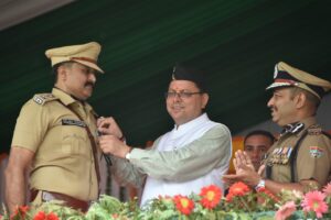 देहरादून। मुख्यमंत्री पुष्कर सिंह धामी ने स्वतंत्रता की 75वीं वर्षगांठ के अवसर पर परेड ग्राउण्ड देहरादून में राज्य के मुख्य कार्यक्रम में ध्वजारोहण किया। इस अवसर पर मुख्यमंत्री ने पुलिस अधिकारियों एवं कर्मचारियों को विशिष्ट कार्यों के लिए मुख्यमंत्री सराहनीय सेवा पदक प्रदान किया। पुलिस उप महानिरीक्षक सेंथिल अबूदई कृष्णराज एस., उपनिरीक्षक रेखा दानू, कृपाल सिंह एवं मुख्य आरक्षी वेद प्रकाश भट्ट को मुख्यमंत्री सराहनीय सेवा पदक प्रदान किया गया। भ्रष्टाचार पर जीरो टॉलरेंस की नीति के क्रम में यूकेएसएसएससी परीक्षा धांधली की जांच कर रही वरिष्ठ पुलिस अधीक्षक अजय सिंह के नेतृत्व में एस.टी.एफ. की टीम को भी मुख्यमंत्री ने मुख्यमंत्री सराहनीय सेवा पदक प्रदान किया। वरिष्ठ पुलिस अधीक्षक एस.टी.एफ. अजय सिंह, उप निरीक्षक दिलवर सिंह, नरोत्तम बिष्ट, उमेश कुमार एवं विपिन बहुगुणा को मुख्यमंत्री सराहनीय सेवा पदक प्रदान किया गया। इस अवसर पर मुख्यमंत्री ने स्वतंत्रता संग्राम सेनानियों के परिजनों को सम्मानित किया एवं फोटो प्रदर्शनी का अवलोकन भी किया।
