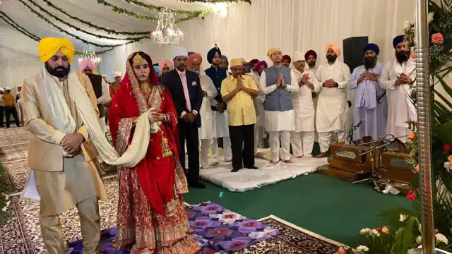 पंजाब के मुख्यमंत्री भगवंत मान आज शादी के बंधन में बंध गए हैं। चंडीगढ़ स्थिति अपने आवास पर उन्होंने सादगी साथ डॉ. गुरप्रीत कौर के साथ शादी रचाई। यह मान की दूसरी शादी है। शादी से पहले ही सोशल मीडिया पर भगवंत मान को बधाइयां मिलने लगी थीं। शादी के बाद दूल्हा और दुल्हन की मनमोहक तस्वीरें भी सामने आई हैं। बता दें कि इस शादी समारोह में ज्यादा भीड़-भाड़ नहीं थी।