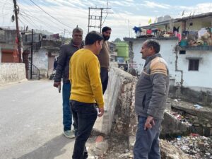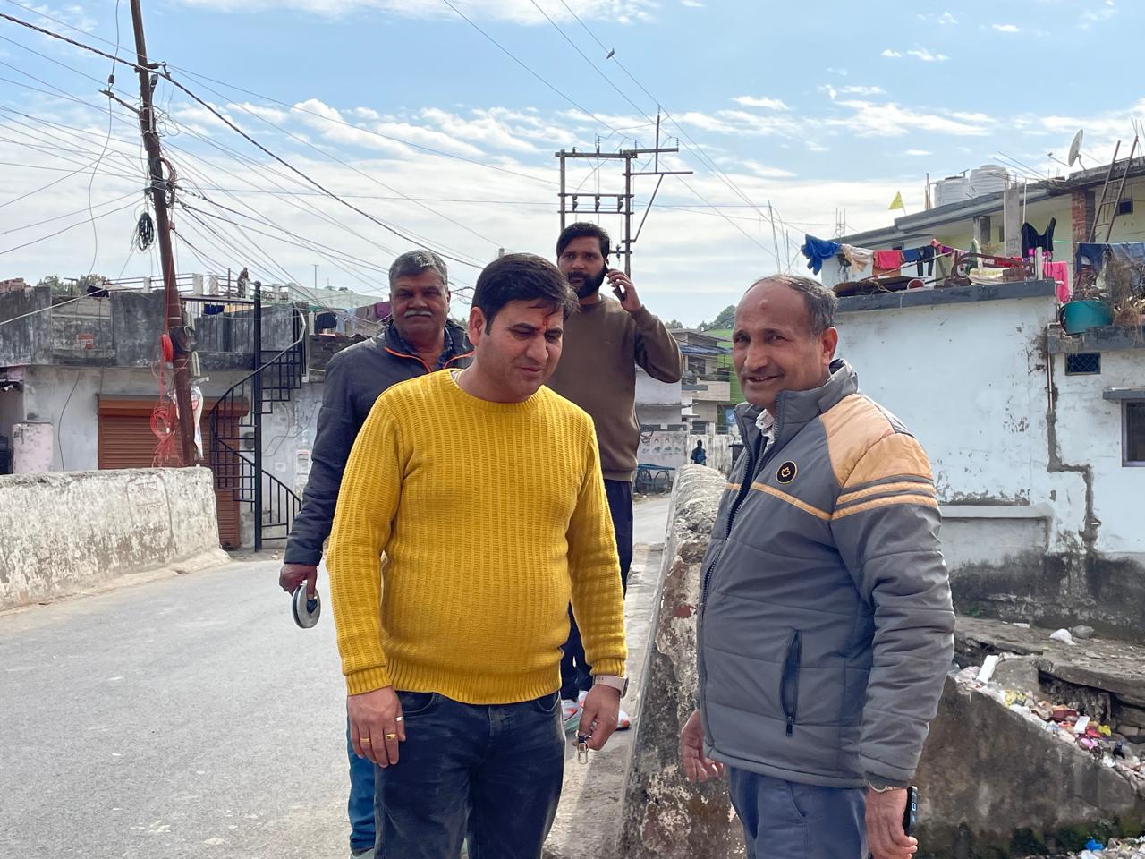 (फोटो: वार्ड नंबर 63 के पार्षद श्री केमवाल जी एवं पी डबल्यू डी के अधिकारी पुलिया का निरीक्षण करते हुए)