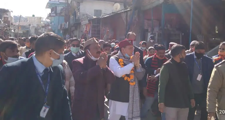 उत्तरकाशी पहुंचने के बाद मुख्यमंत्री पुष्कर सिंह धामी हेलीपैड से सीधे मनकामेश्वर मंदिर पहुंचे। यहां उन्होंने पूजा अर्चना की और उसके बाद यमुनोत्री विधानसभा सीट से बीजेपी प्रत्याशी केदार रावत के पक्ष में चिन्यालीसौड़ बाजार से नागणी तक डोर टू डोर पहुंचकर समर्थन मांगा। साथ ही जनता को प्रदेश सरकार की योजनाओं की जानकारी दी। वहीं उन्होंने कांग्रेस पर भी निशाना साधा है।