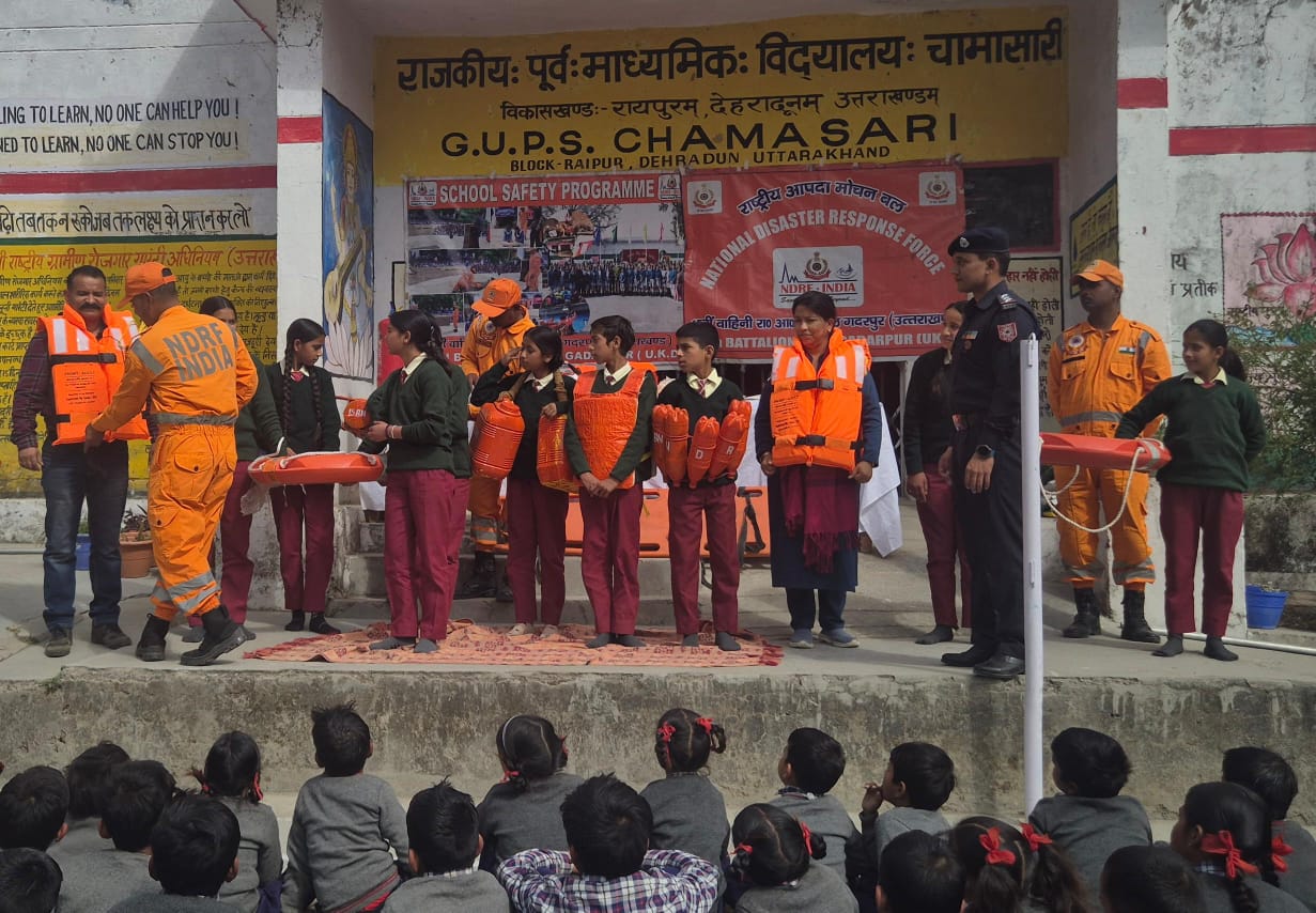 उत्तराखंड (देहरादून) वीरवार, 13 फ़रवरी 2025 NDRF 15 बटालियन के इंस्पेक्टर श्रीमान आनंद सिंह डिगारी के नेतृत्व में जाबांज 13 सदस्यीय दल के द्वारा राजकीय प्राथमिक विद्यालय चौकी चुंगी चामासारी रायपुर, राजकीय पूर्व माध्यमिक विद्यालय चामासारी और हाई स्कूल चामासारी रायपुर देहरादून के बच्चों के मध्य प्राकृतिक और मानव जनित आपदा प्रबंधन पर विस्तार से प्रशिक्षण कार्यक्रम का आयोजन किया गया।