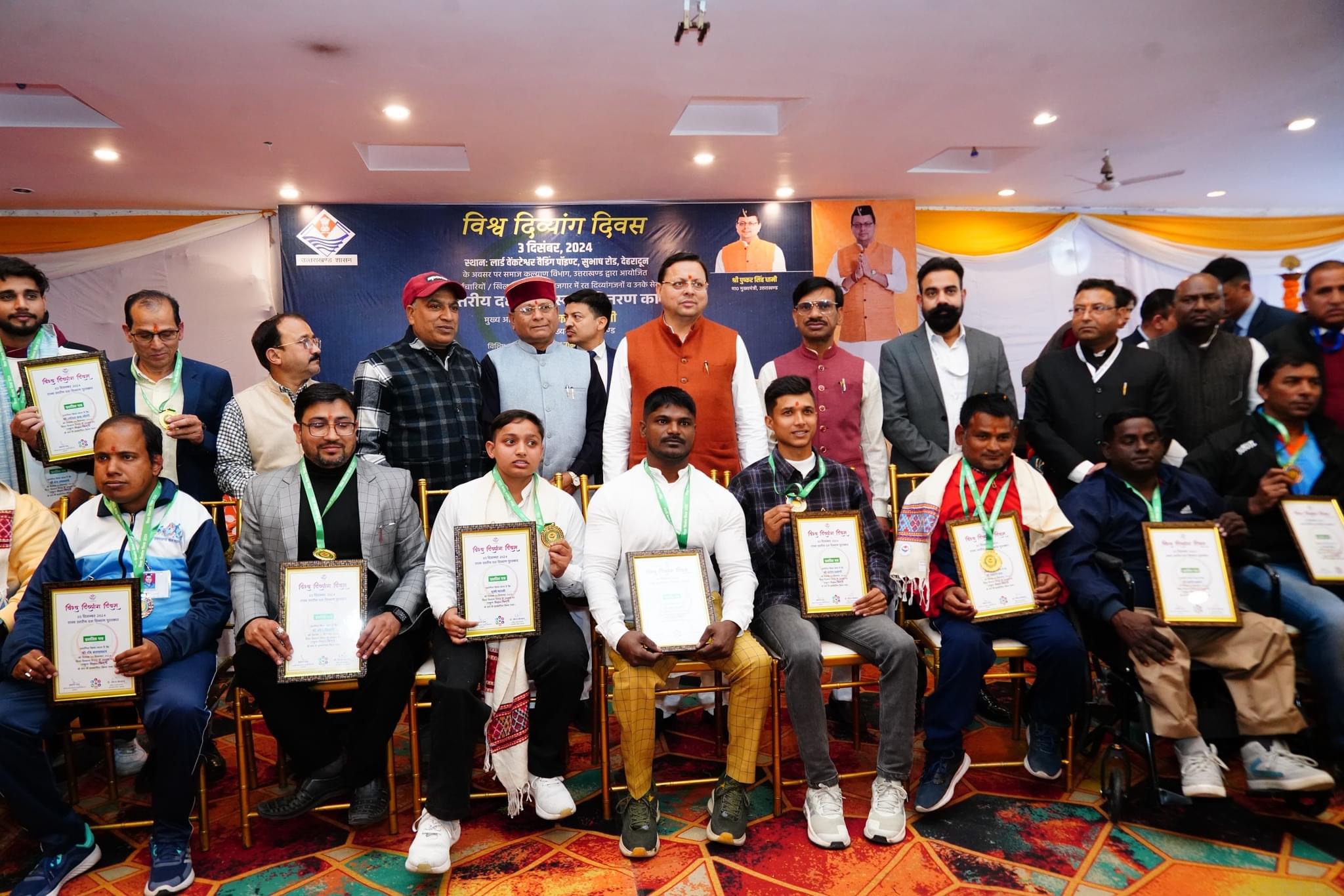 मुख्यमंत्री पुष्कर सिंह धामी ने मंगलवार को विश्व दिव्यांग दिवस के अवसर पर सुभाष रोड स्थित वैडिंग प्वाइंट में आयोजित दिव्यांग राज्य स्तरीय दक्षता पुरस्कार वितरण कार्यक्रम में 89 दक्ष दिव्यांग कर्मचारियों, खिलाड़ियों एवं स्वतः रोजगार रत दिव्यांगजनों व उनके सेवायोजकों को राज्य स्तरीय दक्षता पुरस्कार प्रदान कर सम्मानित किया, जिसमें 25 दक्ष दिव्यांग कर्मचारी, 32 दक्ष दिव्यांग खिलाड़ी, 30 स्वतः रोजगार रत दिव्यांगजन एंव 2 दिव्यांगजनों के सेवायोजक सम्मिलित थे।