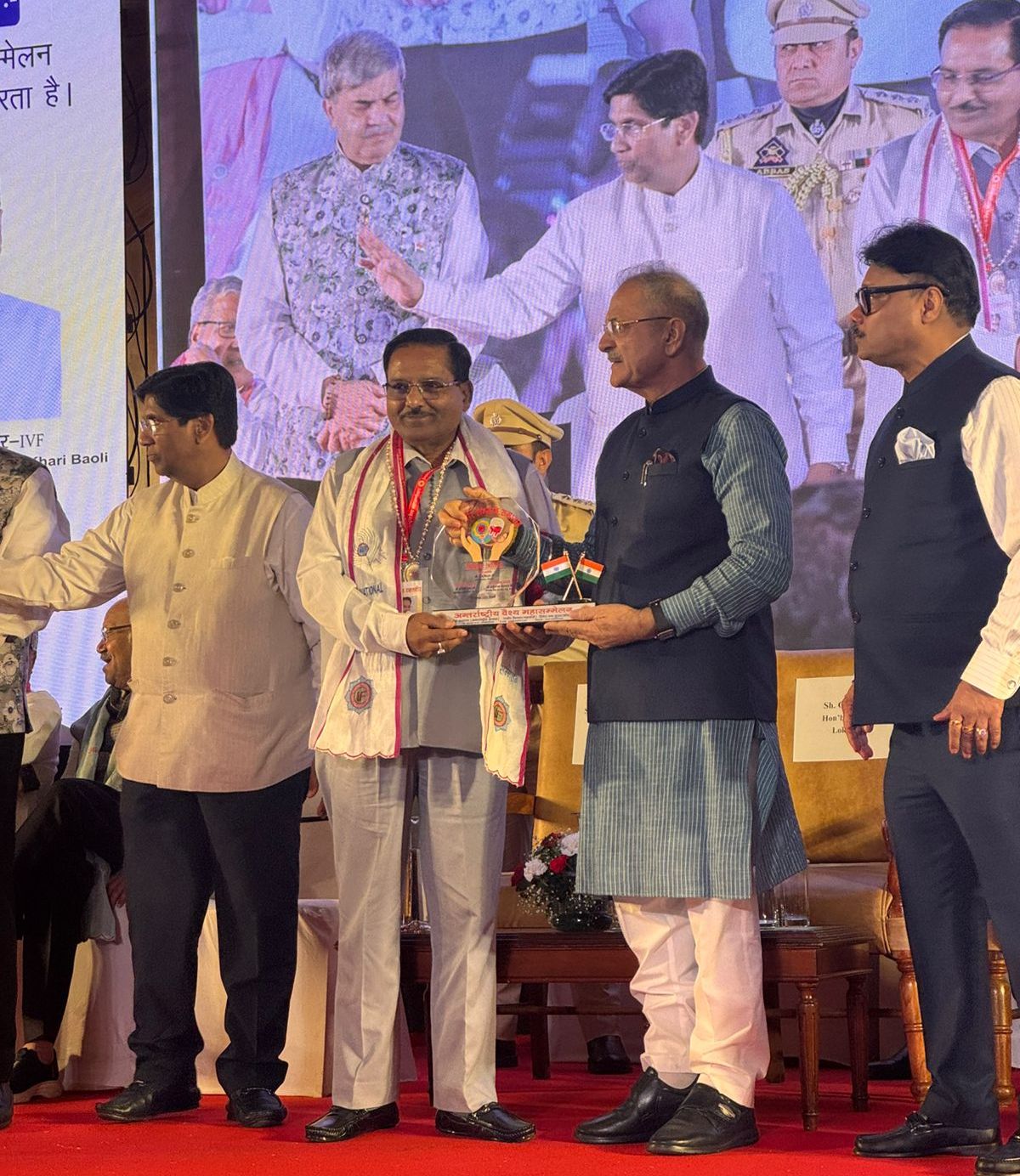 देहरादून। 21 अगस्त 2025: उत्तराखंड में सर्वाधिक 131 बार रक्तदान करने पर आईवीएस द्वारा आयोजित महारक्त वीरों के सम्मानार्थ आयोजित समारोह में मुख्य अतिथि लेह लद्दाख के उपराज्यपाल कविंद्र गुप्ता द्वारा योगेश अग्रवाल को दिल्ली में महारक्तवीर सम्मान से सम्मानित किया गया। देहरादून, इंटरनेशनल वैश्य फेडरेशन द्वारा देशभर के रक्तदानियों और महारक्तदानियों को सार्वजनिक रूप से सम्मानित करवाने हेतु अशोका होटल, देहली में आयोजित समारोह में बतौर मुख्य अतिथि लेह लद्दाख के राज्यपाल कविंद्र गुप्ता द्वारा देवभूमि उत्तराखंड में सर्वाधिक 131 बार रक्तदान (रक्त की कमी से जूझते रोगियों की जीवन रक्षार्थ) करने पर देवभूमि उत्तराखंड के योगेश अग्रवाल को सम्मानित किया गया।